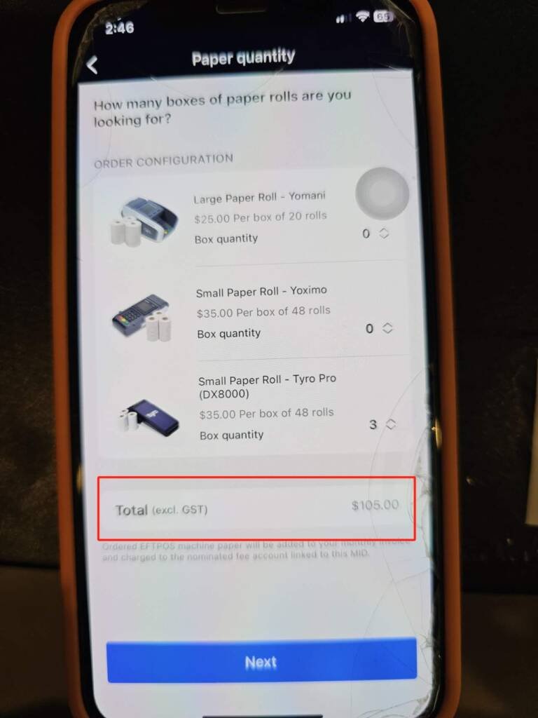 If you see you need to pay money, keep going. Paper roll is FREE for no cost eftpos machine. If you received invoice for the paper roll, contact me and I will fix for you.